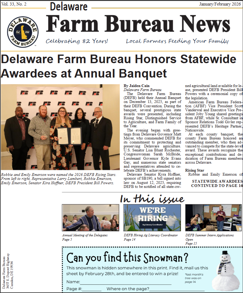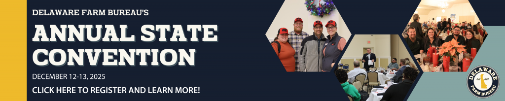 Click here to view the calendar of upcoming events, and to catch up on the latest issue of the Delaware Farm Bureau News!